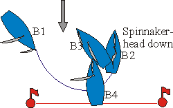 de llegada. Baja su spinnaker, orza, pasa de proa al viento, vuelve a
