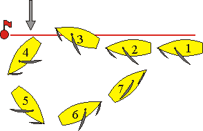 para cruzar la linea de salida y antes de empezar a cenir, arriba, traslucha