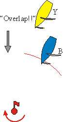 Al final de un tramo de popa, mientras Azul alcanza la zona de dos esloras,