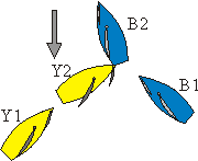 de Azul y la amura de Amarillo. Hay una bandera Y. ¿Cual deberia
