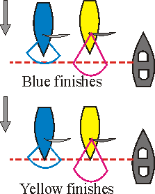 Amarillo termina cuando su proa cruza la linea. La definicion Terminar