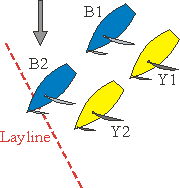 Cerca del final de un tramo hacia sotavento, los barcos estan comprometidos