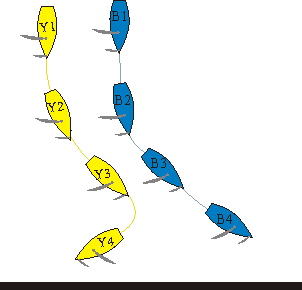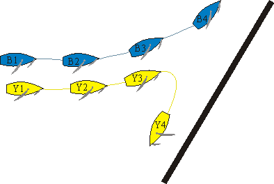 En la pre-salida, Azul y Amarillo amurados a babor comprometidos se aproximan