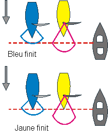 Jaune finit quand son étrave coupe la ligne. La définition