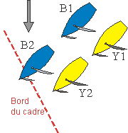 Approchant de la fin du bord de portant, les bateaux sont engagés