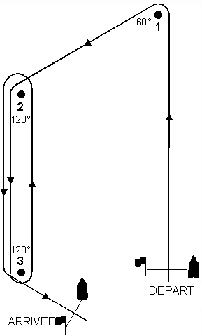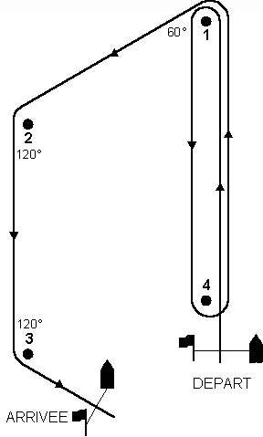 ![]() Départ– 1 – 2 – 3 – 2 – 3 – Arrivée |