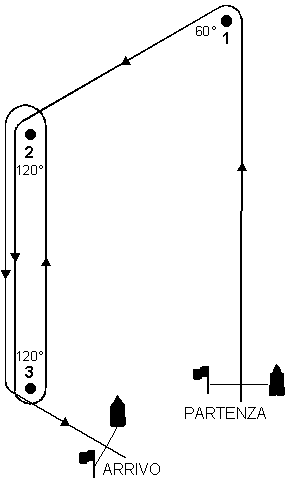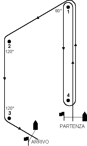Percorso Bolina – Poppa - Triangolo Partenza– 1 – 2 – 3 – 1 – 3 – Arrivo Le opzioni per l’uso di questo percorso includono: |