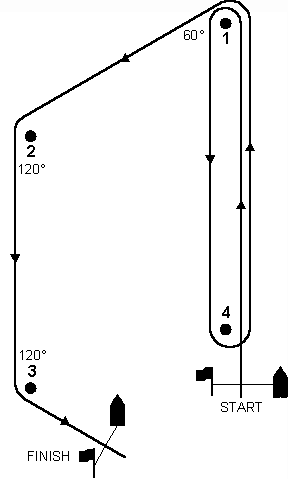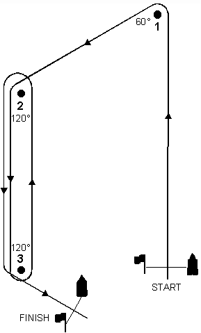 (45° -90° -45° and 60° (4) using a gate instead of a leeward mark for downwind legs , (5) using an offset mark at the beginning of downwind legs , and (6) using the leeward and windward marks as starting and finishing marks. Be sure to specify the interior angle at each mark. |