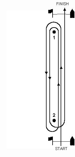 A Windward-Leeward Course Start – 1 – 2 – 1 – 2 – Finish ptions for this course include (1) increasing or decreasing the number of laps, (2) deleting the last windward leg, (3) using a gate instead of a leeward mark, (4) using an offset mark at the windward mark, and (5) using the leeward and windward marks as starting and finishing marks.