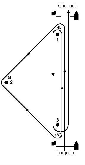 Assegurar que seja especificado o ângulo interior de cada uma das pernas de largo. Recomenda-se que a Baliza 4 seja diferente da baliza de largada. |