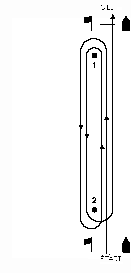 Skice v prilogi _____ prikazujejo proge s priblinimi koti med stranicami, zaporedje jadranja okoli oznak in stran, na kateri je treba pustiti posamezno oznako. [Priblina dolina proge bo _____ .] |